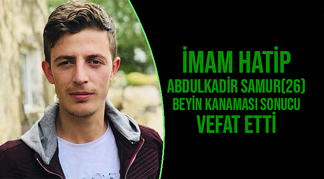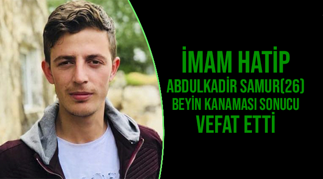 Alınan bilgiye göre Erzurum’un Olur İlçe Müftülüğüne bağlı Şalpazarı Mahalle Camii İmam Hatibi Abdulkadir Samur, sabah saatlerinde evinde beyin kanaması geçirdi.İlçe Müftülüğü toplantısına katılmak üzere kendisini almaya gelen meslektaşının Samur’a ulaşamaması üzerine cami cemaati ile birlikte evine girdi.Samur’un şuuru kapalı şekilde yerde yattığının görülmesi üzerine sağlık ekipleri çağrıldı.Ambulansla hastaneye kaldırılan Samur’un beyin kanaması geçirdiği belirtilerek ameliyata alındı.Sağlık durumunda iyileşmenin görüldüğü Samur, 15 ay sonra ikinci kez alındığı ameliyatta beyin kanamasının tekrarlanması üzerine vefat etti.Cenaze namazını İl Müftüsü Şahin Yıldırım kıldırdıGenç İmam Hatip Samur, Palandöken İlçesi Kümbet Mahallesinde kılınan cenaze namazının ardından aile kabristanında toprağa verildi.Din görevlisi Samur’un cenaze namazını Erzurum İl Müftüsü Şahin Yıldırım kıldırdı.