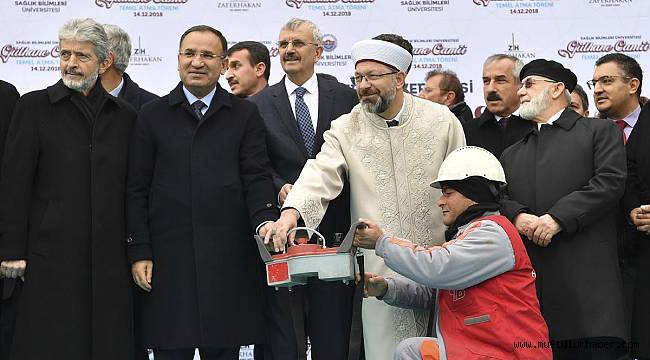 Sağlık Bilimleri Üniversitesi Gülhane Camii’nin temeli, diyanet İşleri Başkanı Prof. Dr. Ali Erbaş’ın katılımıyla gerçekleştirilen törenle atıldı.Sağlık Bilimleri Üniversitesi Gülhane Külliyesi’nde yapılacak olan caminin temel atma töreninde konuşan Diyanet İşleri Başkanı Erbaş, Hz. Peygamberin Medine’ye hicret ettiğinde yaptığı ilk işin orada bir mescit yaptığını hatırlatarak “Burada adeta Hz. Peygamberin Medine’ye hicret ettiğinde yaptığı ilk işin temelini atıyoruz” dedi.Başkan Erbaş, Hz. Peygamberin Mescid-i Nebevi inşa ettikten sonra yanına insanların ilim, irfan, bilgi, hikmet sahibi olmaları için Suffe denilen bir mektep yaptığını ifade ederek, “İnşallah bu camimizde gençlerimiz, insanlarımız sadece namaz kılmakla yetinmeyecekler, bir köşesinde derslerine çalışacaklar, öbür köşesinde sohbetlerini yapacaklar, bu camiyi çok fonksiyonlu olarak kullanacaklar” diye konuştu.Hz. Peygamberin “Mahşer günü hiçbir gölgenin bulunmadığı bir anda Allah'ın arşının gölgesi altında gölgelenecek yedi sınıf insan vardır. Bunlardan birisi de gönlü, kalbi camilere bağlı insanlardır” buyurduğunu belirten Başkan Erbaş, şöyle devam etti:“Rabbim hepimize gönlünün, kalbinin camilere bağlı olmasını ve böyle nesillere sahip olmayı bizlere nasip eylesin. İnşallah bu camimiz, kısa zamanda yapılır. Niyet edenden, emeği geçmiş ve tamamlanıncaya kadar emeği geçecek olan herkesten Allah razı olsun.”Başkan Erbaş, konuşmasını ardından dua etti.Duasında dün Ankara'da tren kazasında hayatını kaybedenlere ve tüm şehitlere Allah'tan rahmet, yaralılara acil şifalar dileyen Başkan Erbaş, şu niyazda bulundu:“Allah’ım, Sağlık Bilimleri Üniversitesi Gülhane camimizi hayırlara vesile eyle. Allah'ım en kısa zamanda tamamlamayı ve içerisinde hep birlikte rükû ve secde etmeyi, ibadet etmeyi bizlere nasip eyle. Allah'ım, bu caminin yapılmasına vesile olan tüm kullarından razı ol ve bizleri de buna vesile olanlardan eyle. Allah'ım hiçbir namahrem el, mabetlerimizin göğsüne değmesin. Ya Rabbi, bu ezanlar yurdumuzun üzerinde ilelebet devam etsin. Ya Rabbi, gönüllerimizi ve nesillerimizi camilerden uzak eyleme. Allah'ım, askerimizden, polisimizden vatan, bayrak, milletimiz uğruna feda-i can eden bütün şehitlerimizin ruhlarına okuduğumuz Kur’an-ı Kerim’i hediye ediyoruz kabul eyle. Allah'ım gazilerimize, yaralı kardeşlerimize acilen şifalar nasip eyle.”Sağlık Bilimleri Üniversitesi Gülhane Camii, kubbesiz düz çatı, tek minare ve tek şerefeli olarak yapılacak. Aynı anda 2 bin 100 kişinin ibadet edebileceği cami, ahşap kündekari kaplama ve çıtalı döşeme tarzıyla özgün Selçuklu mimarisini yansıtacak. Camide engeliler için özel şadırvan ve asansör yapılacak. Cami müştemilatında 100 kişinin aynı anda kullanabileceği bir kütüphane ve 2 ayrı derslikten oluşan 120 kişilik etüt salonları, açık ve kapalı otopark bulunacak.Törene, eski bakanlardan TBMM Anayasa Komisyonu Başkanı Bekir Bozdağ, Sağlık Bilimleri Üniversitesi Rektörü Prof. Dr. Cevdet Erdöl, Cumhurbaşkanı Başdanışmanı Adnan Tanrıverdi, Ankara Büyükşehir Belediye Başkanı Doç. Dr. Mustafa Tuna ve üniversitenin akademisyenleri de katıldı.
