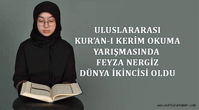 “Uluslararası Hanımlar Kur’an-ı Kerim Güzel Okuma Yarışması’nda ülkemizi temsil eden Konya / Ereğli İlçe Müftülüğü Topak Kur’an Kursu öğrencisi Hafız Feyza Nergiz Dünya ikincisi oldu.