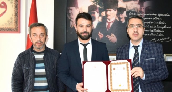 Giresun Espiye İlçe Müftülüğüne bağlı Merkez Erkek Yatılı Kur'an Kursu'nda hafızlık eğitimini tamamlayan Şaban Ağdal'a 'Hafızlık