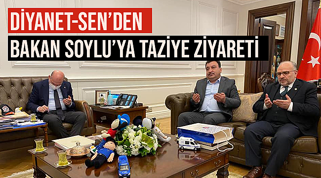 Diyanet-Sen Genel Başkanı Mehmet Ali Güldemir ve yönetim kurlu üyeleri kısa bir süre önce annesini kaybeden İçişleri Bakanı Süleyman Soylu’ya taziye ziyaretinde bulundu.Bir süre önce kalp yetmezliği nedeniyle vefat eden İçişleri Bakanı Süleyman Soylu'nun annesi Servet Soylu için taziye ziyaretinde bulunan Diyanet-Sen Genel Başkanı Mehmet Ali Güldemir “Kıymetli annenizin vefatını büyük bir üzüntüyle öğrendik. Merhumeye Allah’tan rahmet sizlere de başsağlığı ve sabır diliyorum” ifadelerini kullandı