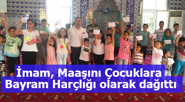 Uluyol Camii İmam Hatibi Adil Satan, bayram geleneğini sürdürmek için bin liralık bayram ikramiyesini ihtiyaç sahibi çocuklara dağıtarak sevindirdi.