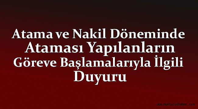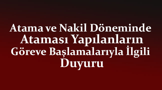 2018 Yılı Atama ve Nakil Döneminde Ataması Yapılanların Göreve Başlamalarıyla İlgili Duyuru