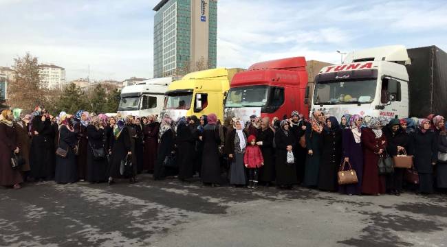Kayseri İl Müftülüğü ve Kayseri Diyanet Vakfı Şubesi tarafından Suriyelilere 11 tır un dualarla gönderildiTırların uğurlanması için Hunat Mahallesi'ndeki otoparkta düzenlenen törende, Kur'an-ı Kerim okundu.Kayseri Müftüsü Şahin Güven, törende yaptığı konuşmada, her ay yardım malzemesi yüklü 10 tırın Suriyelilere gönderildiğini, bugün de un taşıyan 11 tırı Suriye'ye uğurlayacaklarını söyledi.Yardımların artarak devam edeceğini belirten Güven, şunları kaydetti:"Peygamberimiz, 'Amellerin en hayırlısı az da olsa sürekli olandır' diyor. Bizler, ülkemiz genelinde yapılan yardım kampanyalarında Suriyeli kardeşlerimizi unutmadık. Hayırseverlerimiz bizden desteklerini eksik etmiyor. Onlara çok teşekkür ediyoruz. Bizler bu yardımlarımızı Suriye'de hangi mezhep, dinden, ırktan, olursa olsun mazlum ve mağdursa onlara yardım etmek için gönderiyoruz. Başka bir gayemiz yok, sadece yüce mevlamızın rızasını talep ederek gönderiyoruz. İnşallah bu yardımlar yerini bulacaktır."