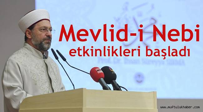 Hz. Peygamber’in doğumu olan Mevlid-i Nebi, tüm yurtta çeşitli programlarla kutlanmaya başlandı.Diyanet İşleri Başkanlığı Din Hizmetleri Genel Müdürlüğü’nün etkinlikler kapsamında düzenlediği Prof. Dr. İhsan Süreyya Sırma’nın konuşmacı olarak katıldığı “Hz. Peygamber’i Nasıl Anlamalıyız?” başlıklı konferansın açılış konuşmasını Diyanet İşleri Başkanı Prof. Dr. Ali Erbaş yaptı.Mevlid-i Nebi’nin ülke genelinde çeşitli etkinliklerle idrak edileceğini aktaran Diyanet İşleri Başkanı Erbaş, konferans öncesi yaptığı kısa konuşmada, “İnsanlığı karanlıktan aydınlığa çıkarmak üzere Rabbimizin gönderdiği yüce Peygamberimizin doğumunun sene-i devriyesinin heyecanı artık bütün dünyayı kaplamaya başladı. Biz de o heyecanı birlikte yaşamak için bu yılın Mevlid-i Nebi etkinliklerini bugün başlatmaya karar verdik” dedi.Hz Peygamber’in Kur’an-ı Kerim’de bir şahit, bir müjdeci, bir uyarıcı olarak gönderildiğine işaret eden Başkan Erbaş, “Hz Peygamber şahitliğini, müjdeciliğini, uyarıcılığını, davetini ve tebliğini yaptı. Vazifesini yerine getirdi ve Rabbine yürüdü. Şimdi bu vazife alimlerin üzerinde, bizim üzerimizde. Esasında bütün Müslümanlar bundan sorumlu ama öncelikli olarak ilim adamlarının, din adamlarının görevi. Bundan sonra Efendimizin bize emanet etmiş olduğu bu görevleri, bizler ve bizim gibi din hizmetinde bulunan insanlar yapacaklar. Cenab-ı Hak, en güzel şekilde yapmayı nasip eylesin" diye konuştu.Konferansa konuşmacı olarak davet edilen Prof. Dr. İhsan Süreyya Sırma, Hz. Peygamber’in hayatından kesitler anlatarak, İslam dünyasında yaşanan sorunlara bakıldığında Müslümanların Hz Peygamber’i ve İslam’ı yeniden anlaması gerektiğini söyledi.