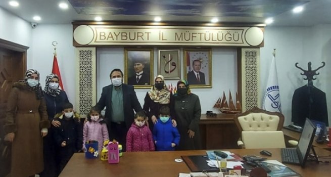Bayburt Müftülüğüne bağlı Gençosman 4-6 Yaş Grubu Kur’an Kursu'nda eğitim gören minik öğrenciler, kumbaralarında biriktirdikleri harçlıklarını Bayburt İl Müftülüğü koordinesinde yapımı devam eden Merkez Kaleardı Yatılı Kur’an Kursu inşaatına bağışladı. Kur’an kursu öğreticileri nezaretinde İl Müftülüğünü ziyaret eden minikler, harçlıklarını Kur’an kursu inşaatında kullanılmak üzere İl Müftüsü Hasan Başoğlu’na teslim etti. Öğrencileri bu anlamlı davranışlarından dolayı tebrik eden İl Müftüsü Başoğlu, “Minik yüreklerine büyük duygular, çok güzel ve değerli hasletler sığdıran sevgili evlatlarımızı tebrik ediyorum. Onları yetiştiren kıymetli hocalarına teşekkür ediyorum. Evlatlarını Kur’an kurslarımıza vererek böyle ulvi hasletler kazanmalarını sağlayan kıymetli velilerimize de şükranlarımı sunuyorum. Göz aydınlığımız olan bu yavrularımızın din-i mübin-i İslam’a, vatana ve millete hayırlı bireyler olmalarını Rabbimden niyaz ediyorum.” ifadelerine yer verdi.