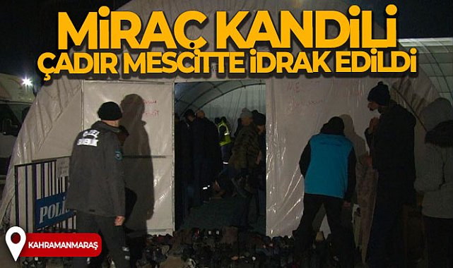 Hazreti Peygamber'in, Allah'ın daveti üzerine Cebrail Aleyhisselam'ın rehberliğinde Mescid-i Haram'dan Mescid-i Aksa'ya, oradan semaya, yüce alemlere ve ilahi huzura yükseldiği gece olarak kabul edilen Miraç Kandili, Kahramanmaraş merkezli depremlerin etkilendiği illerin bazı noktalarında çadır mescitlerde idrak edildi. O yerlerden birisi de Kahramanmaraş Büyükşehir Belediye Binası önündeki meydana kurulan çadır mescitti. Diyanet İşleri Başkanlığı personelinin Kur'an-ı Kerim tilavetiyle devam eden kandil programında, depremlerde hayatını kaybedenler için dua edildi. Ardından vatandaşlar, yatsı namazını cemaatle kıldı.