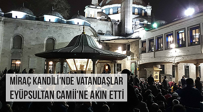 Miraç Kandili'nde tüm yurtta vatandaşlar camilere akın ediyor. İstanbul'da da binlerce vatandaş camileri doldurdu, dualar edildi, Kuran-ı Kerim okundu. 7'den 70'e her yaştan insan Eyüpsultan Camii'ne gelerek yatsı ezanının okunmasıyla birlikte bir arada namaz kıldı. Yer bulamayan çok sayıda vatandaş ise cami avlusuna serilen hasırlarda namaz kıldı. Eyüpsultan Camii'nin eşsiz güzelliği akşam ışıklandırmasıyla taçlandırıldı.