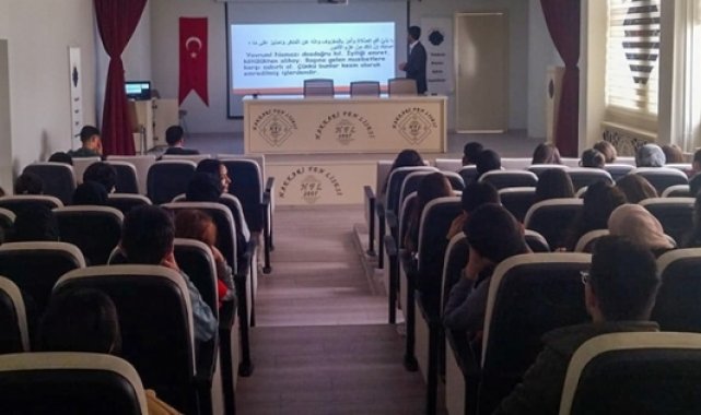 Hakkari Müftülüğü Gençlik Koordinatörlüğü organizesinde il merkezinde bulunan liselerde öğrenim gören öğrencilerine yönelik "Hz. Peygamber ve Gençlik" konulu konferanslar düzenlendi. Diyanet İşleri Başkanlığınca ülke genelinde yürütülen "Gençliğe Değer" projesi kapsamında gerçekleştirilen konferanslara dair açıklamalarda bulunan İl Müftüsü İsmail Fakirullahoğlu, "Gençlerimizi kötü emelli şer odaklarından korumak öncelikli görevimizdir." dedi. "İslam’ı ve Peygamberimiz Hz. Muhammed’i anlayan kimseden zarar gelmez" diyen İl Müftüsü Fakirullahoğlu, "İslam ve Peygamberini tanıyan kötü emellere alet olmaz. Helal ve haramı bilir. Doğruluktan ayrılmaz. Güvenilir ve ahlaklı olur. Mes’ulü olduğu işi sağlam yapar. Anne, baba, öğretmen ve büyüklerine karşı saygıda kusur etmez. İlim ve irfana önem verir. İşte bu gaye ile gençlere yönelik faaliyetleri önemsemekteyiz. Bu konuda bizlere desteklerini eksik etmeyen ve her türlü kolaylığı sağlayan İl Milli Eğitim Müdürlüğü yetkilileri ile okul idarecilerine teşekkür ederim." ifadelerini kullandı.