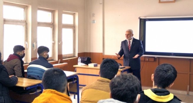 Ağrı İl Müftülüğünce '25 Kasım Kadına Yönelik Şiddete Karşı Mücadele” kapsamında öğrencilere yönelik konferans düzenlendi.