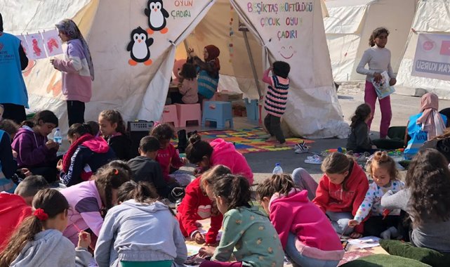 İstanbul Beşiktaş İlçe Müftülüğü, depremden etkilenen çocuklar için oyun çadırı kurdu.
