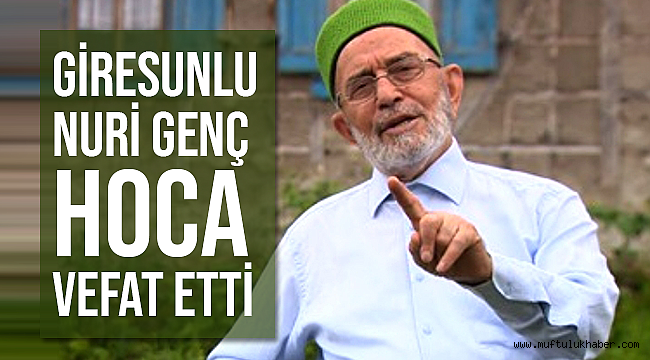Giresun ve Karadeniz bölgesinin önemli kanaat önderlerinden emekli Kur'an Kursu öğreticisi, Giresun İl Müftü Yardımcısı Yusuf Genç'in babası Nuri Genç hoca Hakk'a yürüdü.