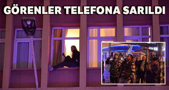 Otelin penceresine çıkarak intihara kalkıştı, vatandaş kayda aldı