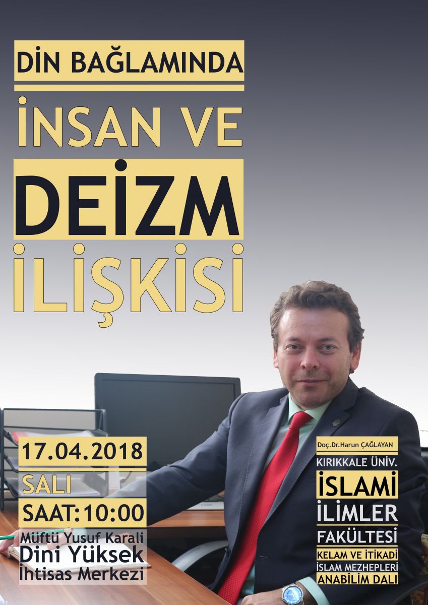 Rize müftü yusuf karali dini Yüksek İhtisas Merkezinde bilgi ve tecrübe paylaşımı programı kapsamında Kırıkkale Üniversitesi İslami İlimler Fakültesi Kelam ve İtikadi İslam Mezhepleri Anabilim Dalı Öğretim Üyesi Doç. Dr. Harun ÇAĞLAYAN'ın katılımlarıyla “Din Bağlamında İnsan ve deizm İlişkisi” konulu konferans düzenlendi.