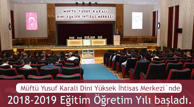Müftü Yusuf Karali Dini Yüksek İhtisas Merkezi`nde 2018-2019 Eğitim Öğretim Yılı başladı. Kuranı Kerim tilaveti ve dualarla startı verilen yeni eğitim yılı açılışında konuşan Dini Yüksek İhtisas Merkezi Müdürü Sayın Mehmet BİLGİN; ”ihtisas kursu olarak maddi ve manevi tüm desteği vermeye hazırız. Sadece siz kursiyerlerimizin gayret ederek çalışmalarını istiyorum” İfadelerini kullandı.