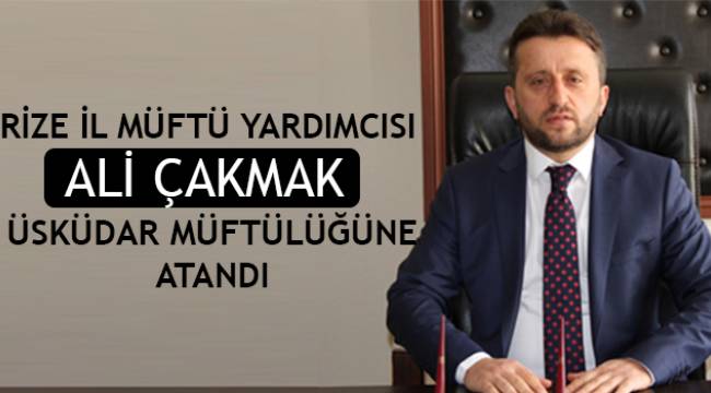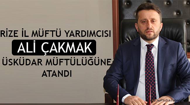 Üsküdar Müftüsü Dr.Enver Osman KAAN'ın Marmara Üniversitesi İlahiyat Fakültesine Yrd.Doç.Dr.olarak atanması nedeniyle boşolan ilçe Müftülüğüne ,2011 yılından itibaren Rize İl Müftü Yardımcısı olarak başarıyla görevini sürdüren Ali Çakmak atandı.ÜSKÜDAR’IN YENİ İLÇE MÜFTÜSÜ ALİ ÇAKMAK KİMDİR?11.05.1976 tarihinde Rize'nin Çayeli ilçesinde doğdu. İlkokulu 1983-1988 yılları arası Çayeli'nin Aşıklar köyünde bitirdi. 1988-1989 yılları arasında Akarsu Köyü Merkez Kur'an Kursu'nda hafızlığını yaptı. 1989-1996 yılları arasında Rize İmam-Hatip Lisesi'ni bitirdi. 21.11.1997 tarihinde İmam-Hatip olarak Rize'nin Çayeli ilçesine bağlı Başköy Camii'ne atandı. 1998 yılında Rize İlâhiyat Fakültesini kazanarak 2002 yılında mezun oldu. 2002 yılı içerisinde Diyanet İşleri Başkanlığı'nın İhtisas Eğitim Merkezi için açtığı sınavı kazanarak 01.10.2002 tarihinde Trabzon Darıca Eğitim Merkezi'ne atandı. 16.05.2005 tarihinde Artvin İli Hopa İlçesine vaiz olarak atandı. 26.03.2008 tarihinde Ağrı İli Eleşkirt İlçe Müftülüğü'ne atandı. 04.08.2011 tarihinde Rize İl Müftü Yardımcısı olarak göreve başlayan Çakmak, evli ve üç çocuk babasıdır.