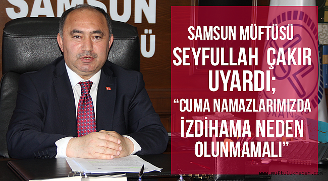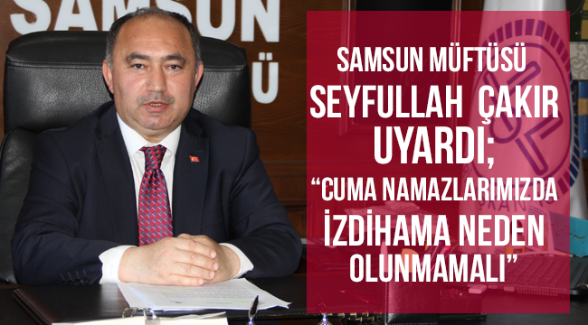 Samsun Müftüsü Seyfullah Çakır, “Korona virüsü tedbirleri kapsamında camilerin avlusu bahçesi bulunan yerlerde cuma namazı kılınacak, cami avlusu bulunmayan camilerimiz de kapalı tutularak uygun mekanlara vatandaşlarımız yönlendirilecektir. Alanlar belirli kapasitede olacağından izdihama neden olunmaması çok büyük önem arz etmektedir” dedi.