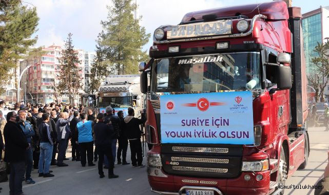 Siirt İl Müftülüğü ve Türkiye Diyanet Vakfı Siirt Şubesinin hayırseverlerin desteğiyle hazırladığı gıda, giysi ve hijyen malzemelerinin bulunduğu 4 tır yardım, Hükümet Caddesi’ndeki eski valilik önünde dualarla uğurlandı.Vali ve Belediye Başkan Vekili Osman Hacıbektaşoğlu, konuşmasında, yardımların hazırlanmasında emeği geçen hayırseverlere teşekkür etti.Siirtlilerin Suriye’deki mağdurlara her zaman yardım elini uzattığını belirten Hacıbektaşoğlu, şunları aktardı:“Suriye için yolun iyilik olsun kampanyasında 4 ile 5 yaşlarındaki çocuktan 80 ile 90 yaşlarındaki vatandaşa kadar herkes imkanları ölçüsünde destek verdi. Un, hububat, temizlik ve giyim malzemelerinden oluşan yardımlar İdlib’e ulaştırılmak üzere ilimizden hareket etti.”Amasya’dan da Suriye’nin İdlib kentindeki ihtiyaç sahiplerine gönderilen insani yardım malzemelerini taşıyan 3 tır yola çıktı.İl Müftülüğü ve Türkiye Diyanet Vakfı Amasya Şubesinin hayırseverlerin desteğiyle hazırladığı gıda, giysi ve yakacak malzemelerinin bulunduğu yardım tırları, dualarla uğurlandı.Vali Mustafa Masatlı, İl Müftülüğü önündeki törende yaptığı konuşmada, yardımların hazırlanmasında emeği geçen hayırseverlere teşekkür etti.Amasyalıların Suriye’deki mağdurlara her zaman yardım elini uzattığını belirten Masatlı, şöyle konuştu:“Savaş bir felakettir, dinimiz her zaman barışı, uzlaşmayı, insanca bir arada yaşamayı emreder ama maalesef hemen sınır komşumuz Suriye’de yıllardır devam eden bir zulüm söz konusu. Bu felakette de atalarımızın yaptığı gibi başta Sayın Cumhurbaşkanımız, devletimiz, devletimizin kurumları ve necip milletimiz olmak üzere oradaki insanlara yardımcı olmaya devam ediyoruz.”
