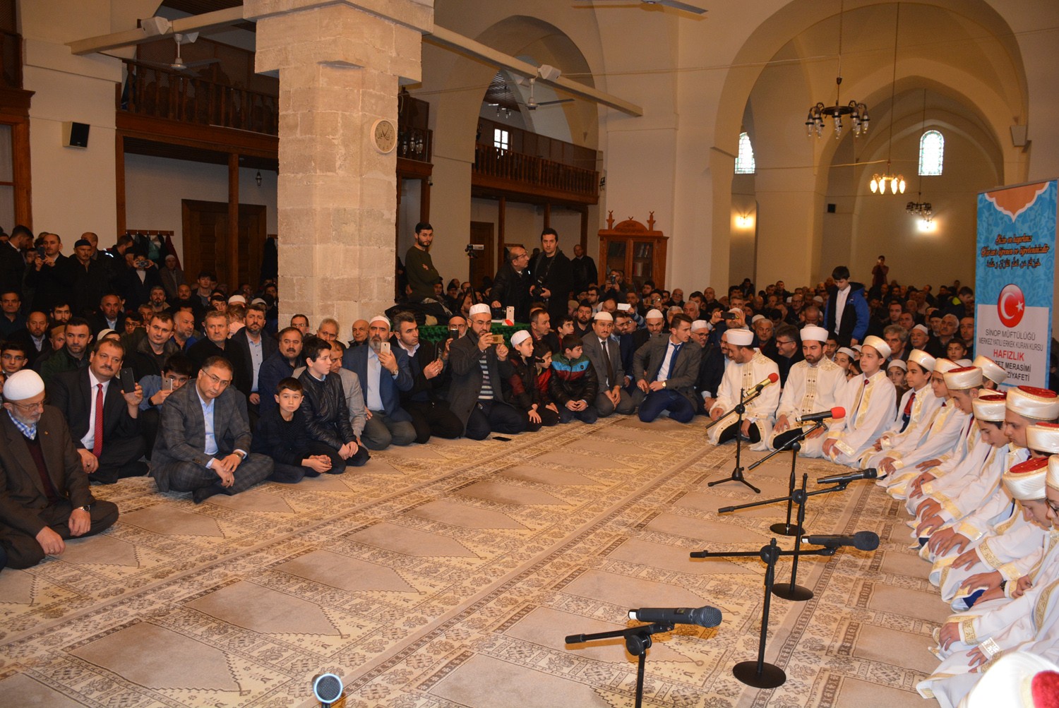 Sinop'ta 'Hafızlık İcazet Merasimi' Alaadin Camisi’nde düzenlendi. Programa Sinop Valisi Köksal Şakalar, Sinop Üniversitesi Rektörü Prof. Dr. Nihat Dalgın, Diyanet İşleri Başkan Yardımcısı Burhan İşliyen, Sinop İl Müftüsü Ali Hayri Çelik, Samsun İl Müftüsü Veysel Çakı, 6 hafız öğreticisi, 12 hafız ve vatandaşlar katıldı.