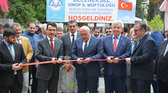 Sinop İl Müftülüğü ve Kur’an Kursları Yaptırma ve Yaşatma Derneği ile birlikte Her yıl geleneksel olarak düzenlemiş olduğu Kermes etkinliği, bu yıl da hayırseverlerin katkıları ile Sinop Alaaddin Camii Avlusunda açıldı.Kermesin açılışı Sinop Valisi Hasan İpek, Orman ve Su İşleri Bakanlığı 10.Bölge Müdürü Hasan Başyiğit, İl Müftüsü Ali Hayri Çelik, İl Afet Acil Durum Müdürü Ümit Ünal, Din Görevlileri ve çok sayıda vatandaş katıldı. Kermes açılışında konuşan İl Müftüsü Ali Hayri Çelik şunları söyledi “ En büyük yatırım gençliğe ve eğitime yapılan yatırımdır. Çünkü gençliği vatan, millet sevgisiyle yetiştiremeyen bir milletin geleceği karanlıktır. Kur’an Kurslarımızda kalan ve hafızlık yapmakta olan geçlerimize daha güzel imkanlar sağlamaya gayret sarf ediyoruz. Onların eğitimlerine ve kaldıkları Kur’an Kurslarımızın fiziki yapılarını daha güzel bir hale getirmek ve onların ihtiyaçlarını karşılamak amacıyla bu kermesi düzenledik.