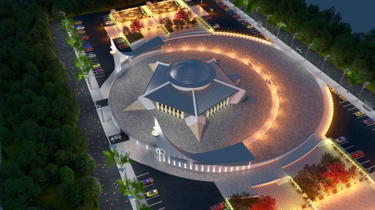Ay yıldız şeklinde tasarlanan cami, bu özelliği ile de Dünya'da bir ilk olacak. Yağan kar ile ay yıldız şeklinde ki hatları daha da belirginleşen cami havadan görüntülendi.