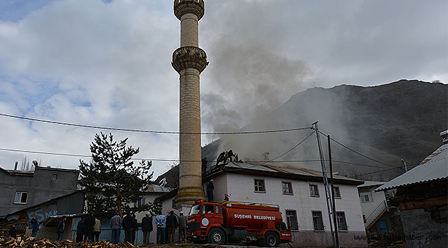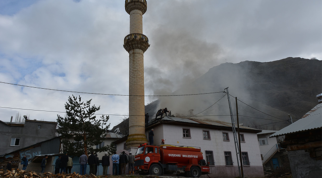 Çatı kısmında başlayan yangın Suşehri Belediye itfaiye ekipleri ve köy sakinlerinin müdahalesi ile camiyi tamamen sarmadan kontrol altına alındı.