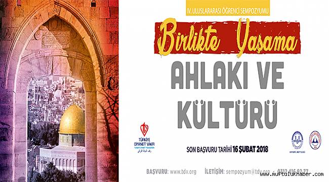 Türkiye Diyanet Vakfı, 4. Uluslararası Öğrenci Sempozyumu kapsamında “Birlikte Yaşama Ahlakı ve Kültürü” başlıklı uluslararası sempozyum düzenliyor.Gerçekleştirdiği eğitim faaliyetleriyle ülkemizde ve İslam dünyasında İslami ilimler alanında ilmi araştırmalar için insan kaynağı yetiştirilmesine katkıda bulunan Türkiye Diyanet Vakfı, bu kapsamda başlattığı Uluslararası Öğrenci Sempozyumlarını sürdürüyor.Bu yıl dördüncüsü düzenlenecek olan sempozyum, 27-29 Nisan 2018 tarihleri arasında Kayseri’de gerçekleştirilecek.Türkiye Diyanet Vakfı desteğiyle Türkiye’de eğitim gören uluslararası öğrenciler ile ülkemizdeki öğrenciler arasında kültürel zenginlik anlamında bilgi paylaşımı ve ortak bilimsel çalışmalar gerçekleştirmek amacıyla başlatılan sempozyumun bu yılki teması, “Birlikte Yaşama Ahlakı ve Kültürü” olacak.İslam medeniyetinde birlikte yaşama kültürü, tarihteki örnekler, İslam coğrafyasındaki uygulamaların yanı sıra bu çerçevede karşılaşılan zorluklar ve pek çok konunun masaya yatırılacağı sempozyumda birlikte yaşama kültürünün bugüne kadarki en önemli sembolü olan Filistin ve Kudüs de sempozyumun önemli konu başlıkları arasında yer alacak.İlki 2014 yılında Bursa’da düzenlenen Uluslararası Öğrenci Sempozyumunun dördüncüsü, Kayseri Erciyes Üniversitesi, Kayseri İl Müftülüğü ve TDV Kayseri Şubesi işbirliğiyle düzenlenecek.Sempozyumun bilim kurulunda ise başta Diyanet İşleri Başkanı ve türkiye diyanet vakfı Mütevelli Heyeti Başkanı Prof. Dr. Ali Erbaş olmak üzere 9 farklı üniversiteden 31 akademisyen yer alıyor.Türkiye Diyanet Vakfı burslusu lisans ve lisansüstü öğrenciler başta olmak üzere yurt içi ve yurt dışından öğrencilerin katılarak tebliğlerini sunacakları sempozyumun başvuruları sempozyum@tdv.org mail adresinden yapılabiliyor. Başvurular 16 Şubat 2018 tarihine kadar devam edecek.4. TDV Uluslararası Öğrenci Sempozyumu hakkında detaylı bilgi ise www.tdv.org adresinden alınabilir.Sempozyumda sunulacak bildiriler daha sonra kitaplaştırılarak kültür hayatına kazandırılacak.Başvuru için tıklayınız
