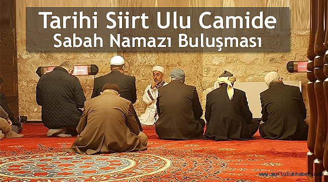 Selçuklu yapımı olan ve hicri 523 yılına uzanan çinili minaresi ile Tarihi Ulu Camisi'nde gerçekleştirilen sabah namazı buluşması programına, Siirt İl Müftüsü Ahmet Altıok, Müftü Yardımcısı Muhammed Özdemir, Türkiye diyanet Vakfı Yurt yöneticileri, öğrenci yurdu öğrencileri ile bazı vatandaş hazır bulundu. Altıok, sabah namazını kıldırmasının ardından, Cami görevlileri tarafından Yapılan tesbihat ve zikirin sonunda Kur’an-ı Kerim okundu, dualar yapıldı.