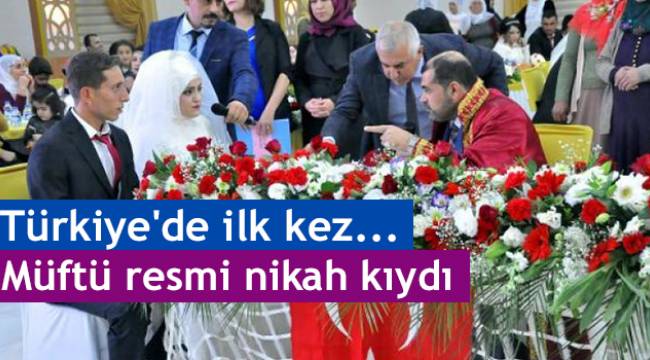 Diyarbakır'ın Bismil ilçe Müftüsü Ahmet Durmuş,Müftülere nikah kıyma yetkisinin yürürlüğe girmesinin ardından , ilk kez resmi nikah kıydı.