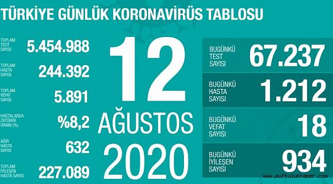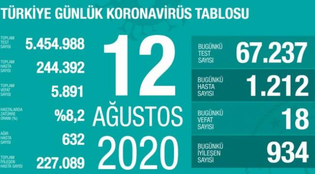 Türkiye'de son 24 saatte 1.212 kişiye Kovid-19 tanısı konuldu, 18 kişi hayatını kaybetti