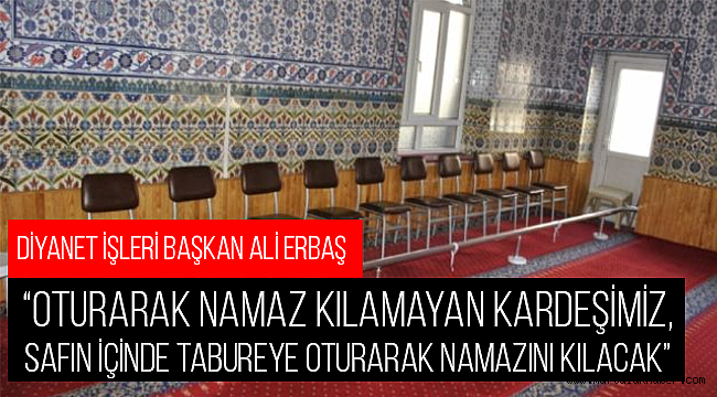 Erbaş,“Oturarak namaz kılamayan kardeşimiz, safın içinde tabureye oturarak namazını kılacak”