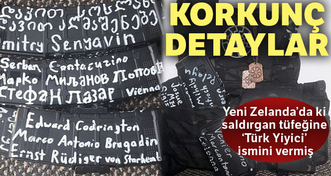 Yeni Zelanda’nın Christchurch şehrinde iki camiye saldırı düzenleyen 4 saldırgandan birinin kullandığı tüfeğin üstünde Türk ve Müslümanlara karşı mücadele etmiş tarihi kişiliklerin isimlerinin yazıldığı ortaya çıktı. Christchurch saldırganının tüfeğine "Türk Yiyici" ismini verdiği öğrenildi.
