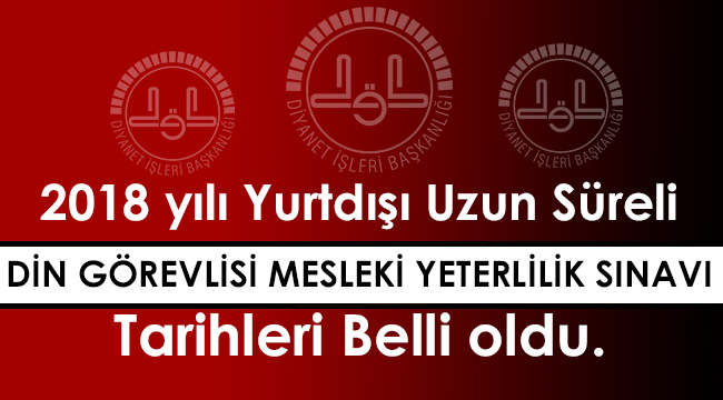 2018 yılı Yurtdışı Uzun Süreli Din Görevlisi Mesleki Yeterlilik Sınav Tarihleri belli oldu