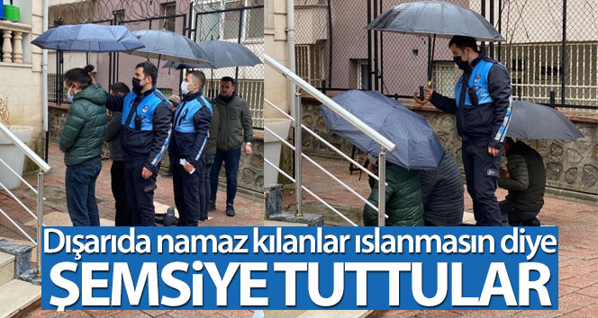Şırnak'ın Uludere ilçesinde namaz kılmak için camiye giden vatandaşlar, sosyal mesafe kuralları kapsamında içeride yer bulamayınca dışarıda namazlarını eda etti. Zabıta görevlileri, dışarıda namaz kılanlar ıslanmasın diye cemaatteki vatandaşlara şemsiye tuttu.